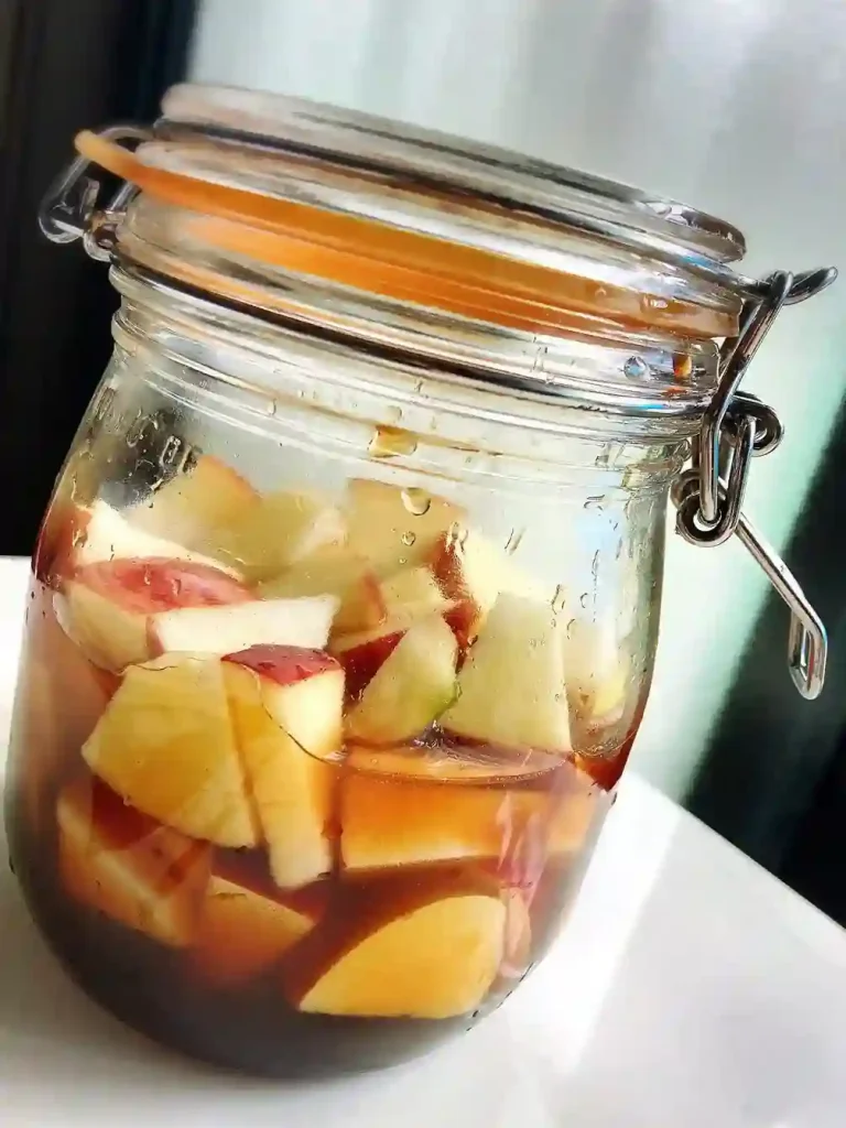 蜂蜜結晶,挖了半天才挖出85ml,下午再接再勵。蘋果醋確實有修復肝的效果,材料放進密封玻璃罐後,直接放冰箱泡兩週,之後便可以食用,但是一天吃一匙15cc即可。